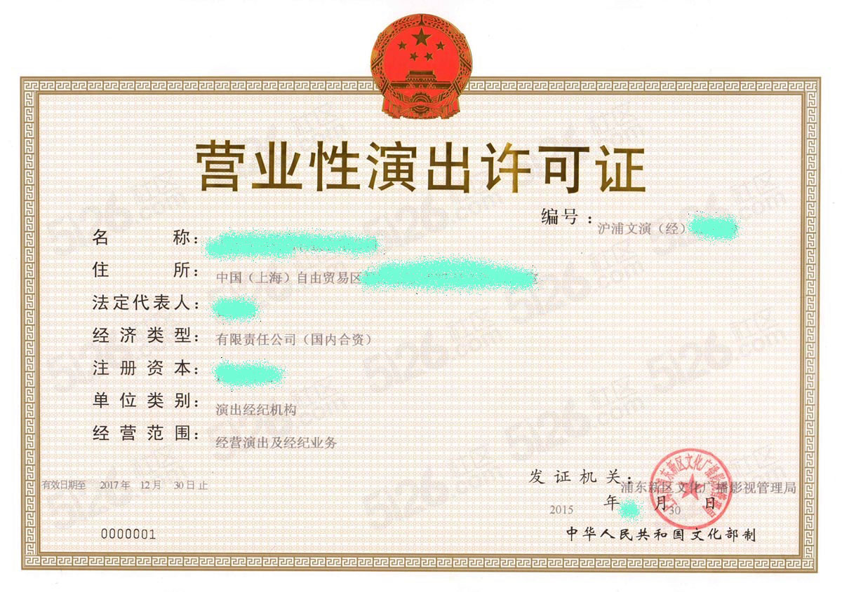 營業(yè)性演出經(jīng)紀(jì)許可證